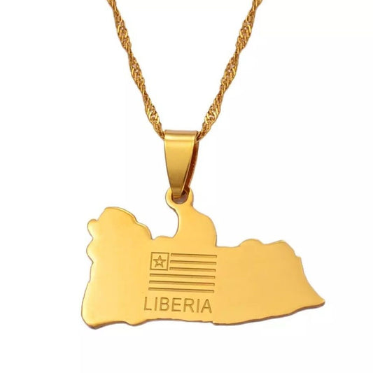Liberia Map and Flag Necklace