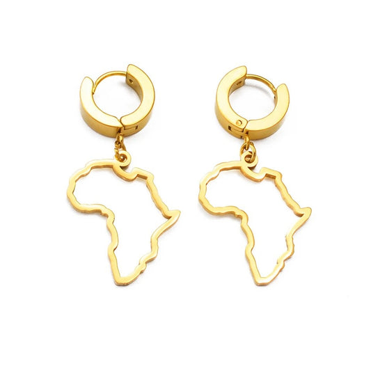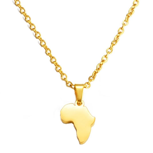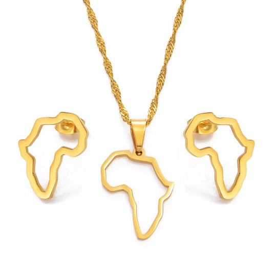 Africa Map Necklace and Earrings Set, Mini Plain Map Style