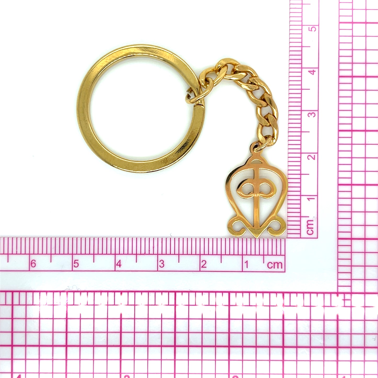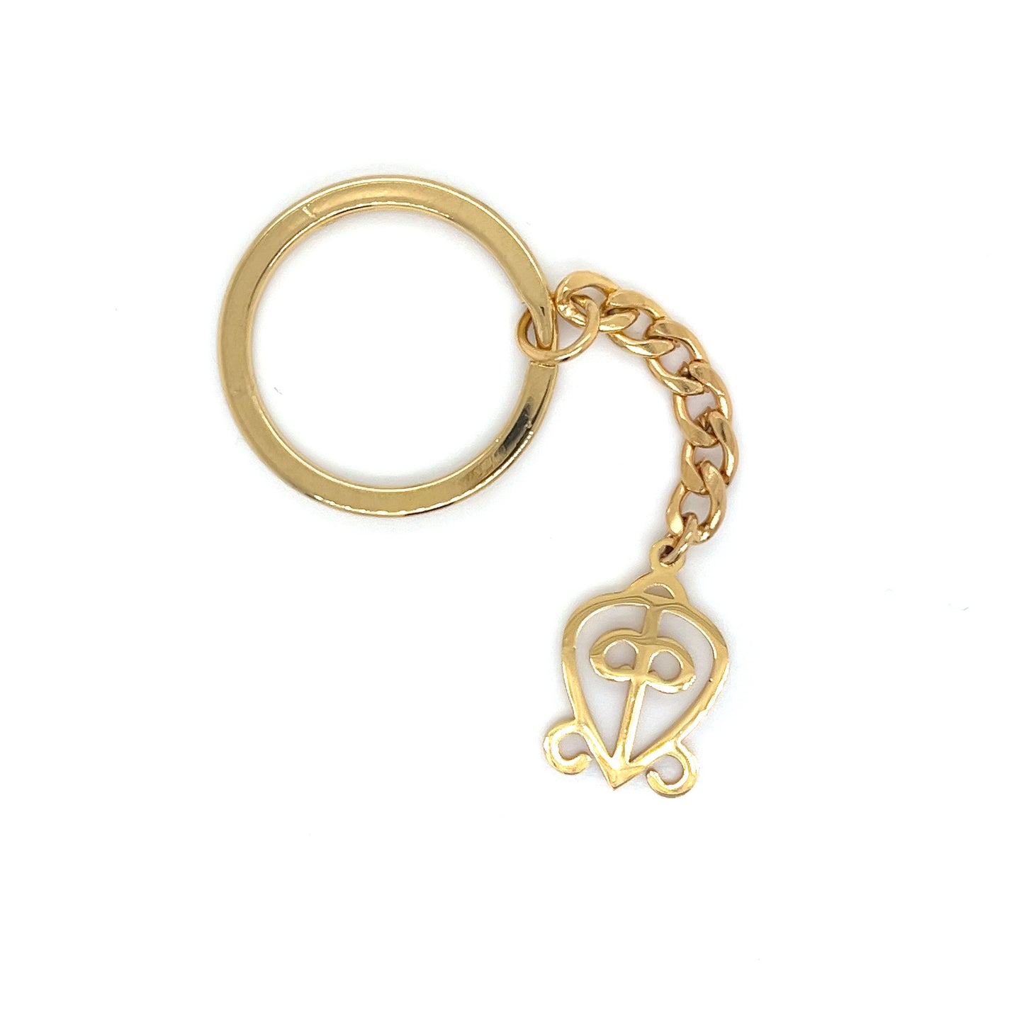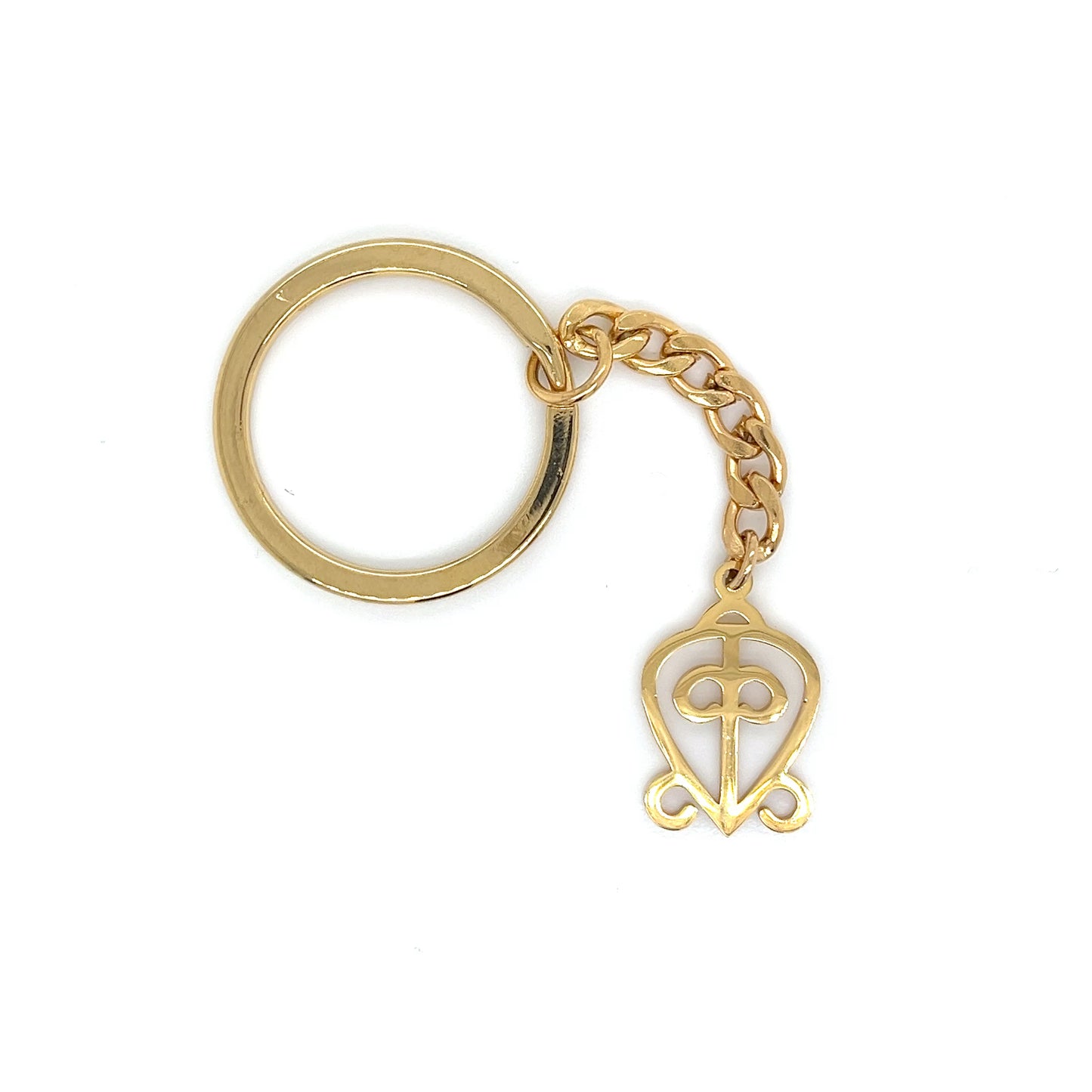 Odo Nnyew Fie Kwan literally means "those led by love never lose their way". It is one of the Adinkra symbols and represent the power of love. The Odo Nnyew Fie Kwan symbol is usually engraved on wedding bands and other events related to the union of two people. Adinkra are symbols from Ghana that represent concepts or aphorisms. This Keychain was made based on the Adinkra symbol of Odo Nnyew Fie Kwan.