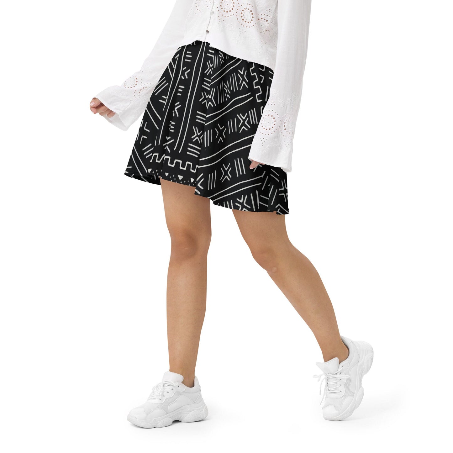 Originating from Mali, West Africa, Bogolan is a traditional African pattern usually dyed on cotton fabric with fermented mud ink. The soft fabric and flared cut of this skater skirt are just a few of the reasons why it's bound to become a favorite in your wardrobe. The flattering silhouette looks great on any body type, and thanks to the elastic waistband, you'll feel extra comfy. This skirt was inpired by the traditional Bogolan print from Mali, West Africa.